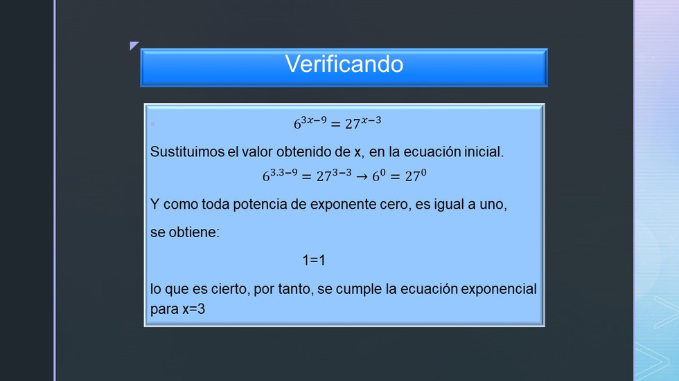 El resolver algorítmicamente (Paso a Paso), un ejercicio o problema, optimiza el aprendizaje, la comprensión y la fijación del conocimiento, ya que al justificar cada afirmación, se están aplicando los respectivos conceptos, leyes, propiedades, etc.